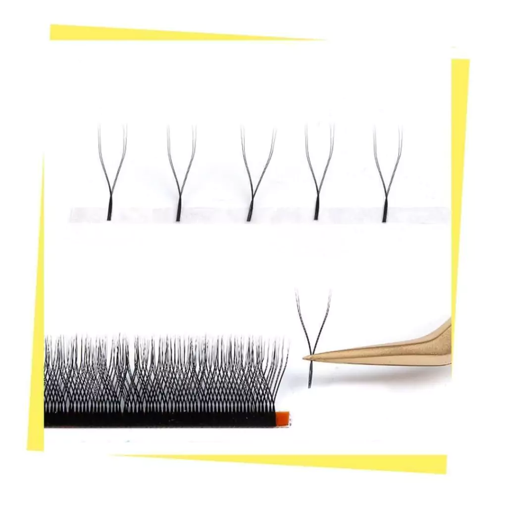 Cílios produzido com PBT de alta qualidade, em formato Y, ideal para técnica de volume brasileiro, onde é usada a mesma técnica do alongamento clássico fio a fio pois você retira um a um do chicote, mas causando um efeito de volume por ter pontas duplas.